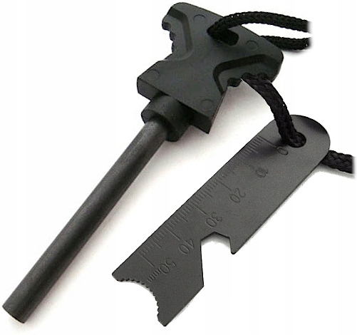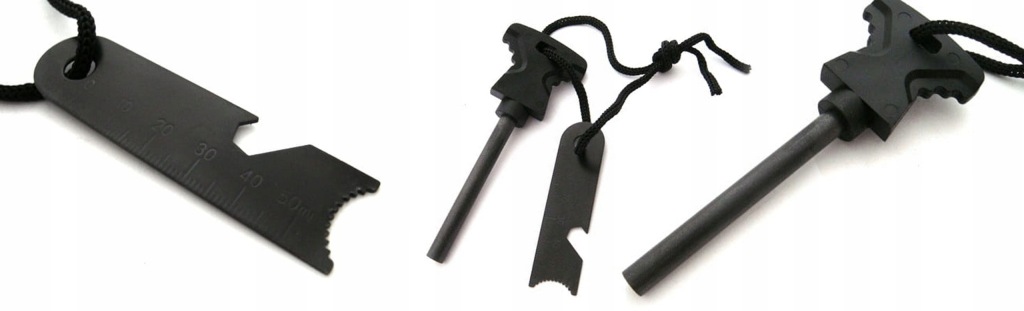 ➡️ Krzesiwo i blaszka są połączone sznurkiem, co daje możliwość zawieszenia na smyczy, przymocowania do breloka lub jako pętlę nadgarstkową.